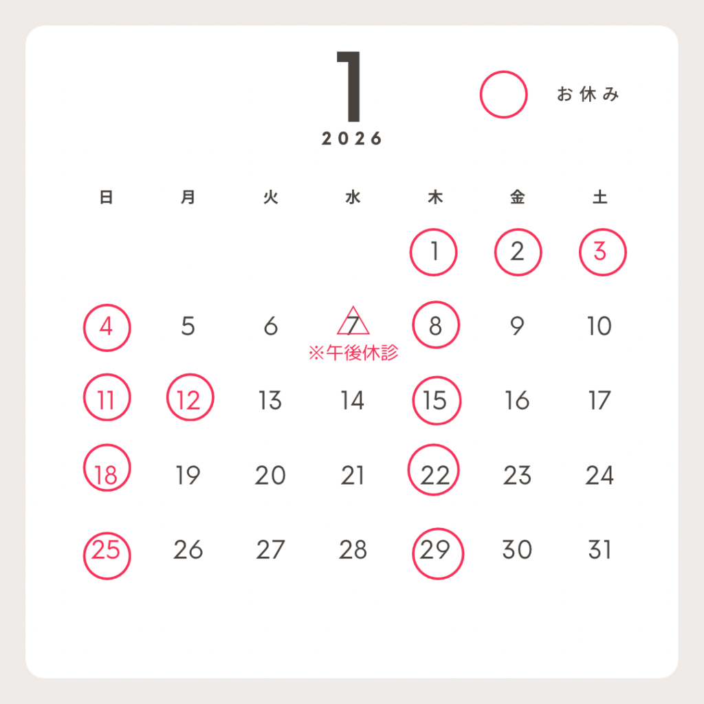 1月の診療日は上記のとおりとなります。