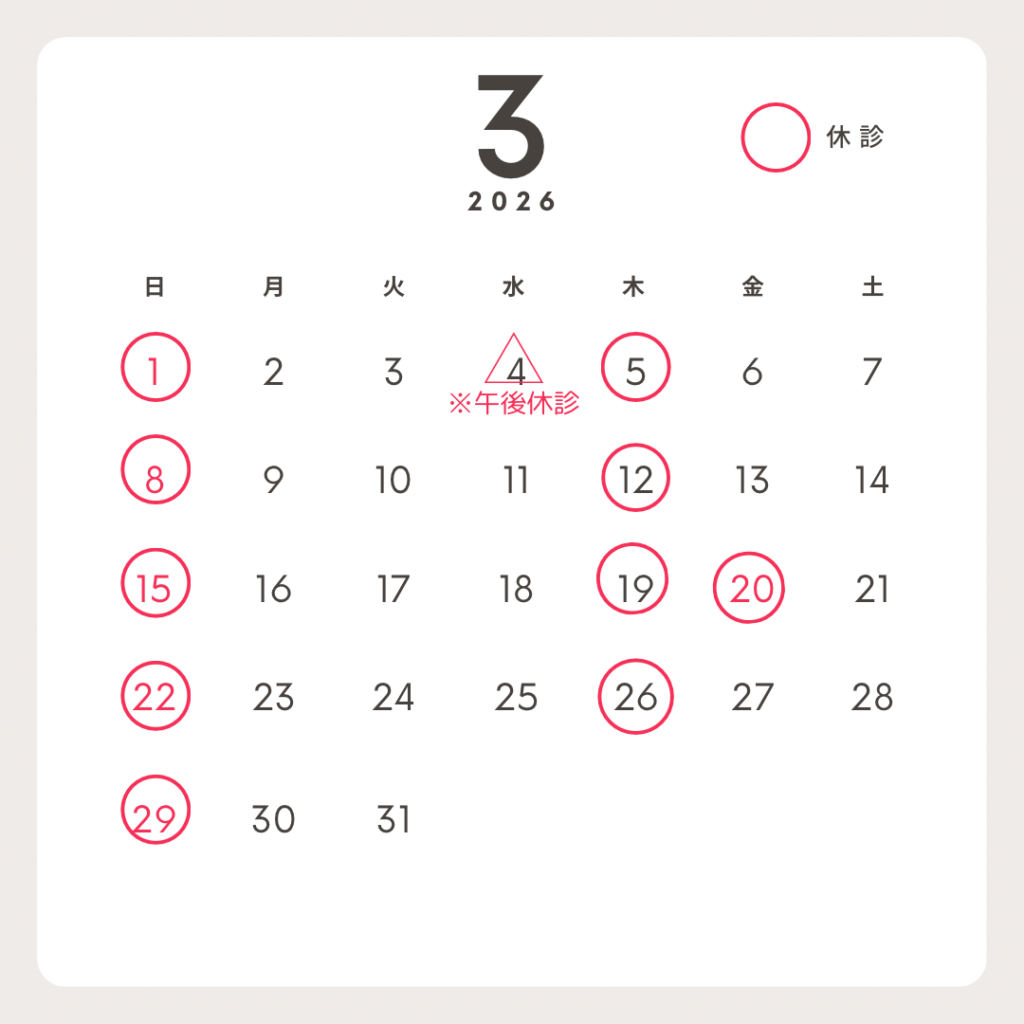 3月の診療日は上記のとおりとなります。